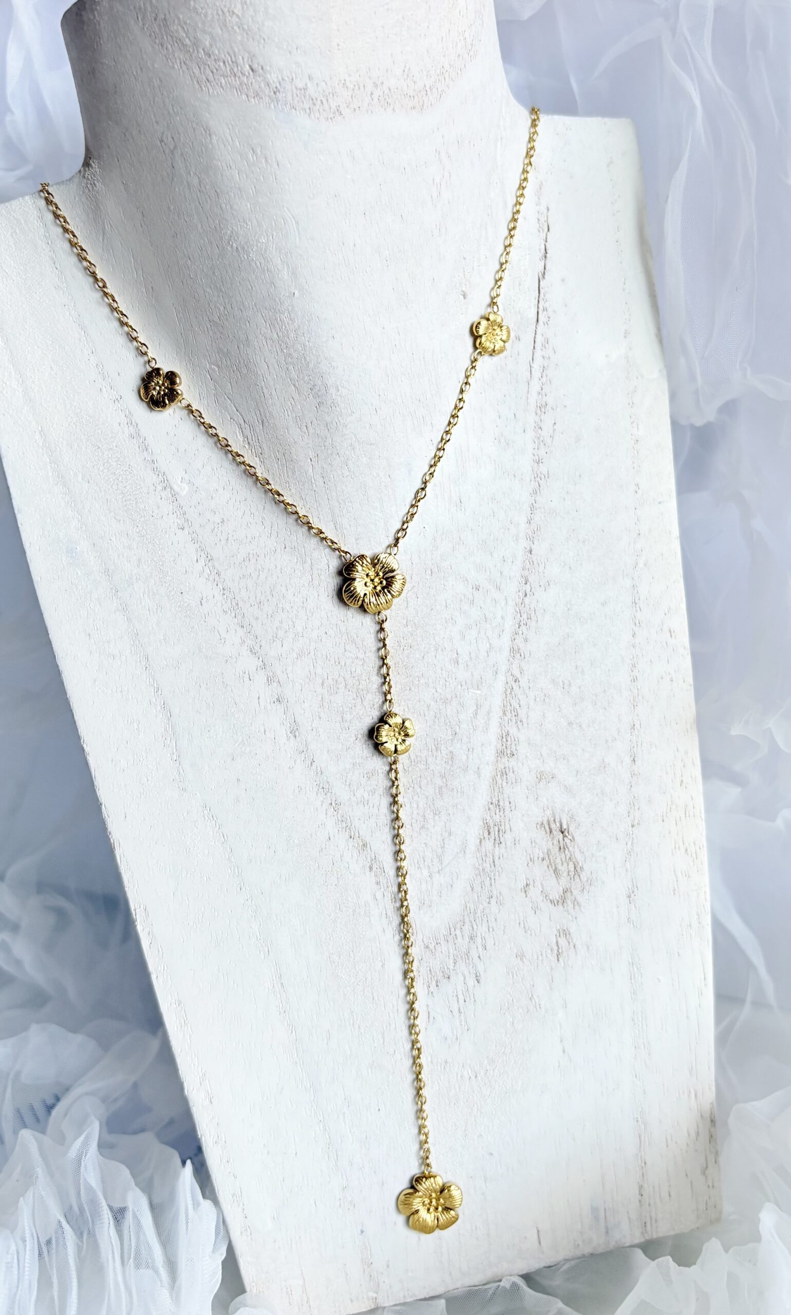 Speziell, extravagant und sexy, 5 Blumen verzieren diese Kette aus Edelstahl, wasserfest mit 18K vergoldet.