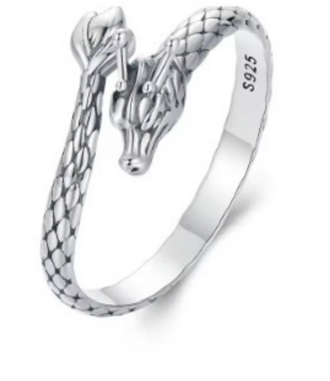 Ring in Silber, offen und in der Grösse verstellbar. Ein zarter Drache im asiatischen Stil. Mit unserem registrierten LOVE Stempel versehen