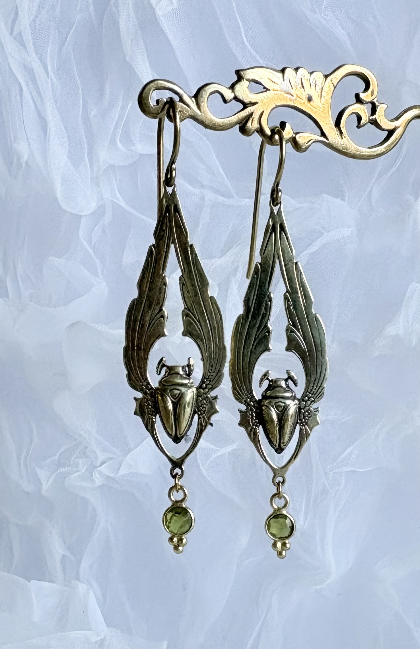 Eigenes Design und exklusive nur hier erhältlich. Vom Jugendstil inspiriert. Diese Paar ist mit einem Peridot und aus Messing. Kommt mit unserem registrierten Stempel LOVE für etwas Selbstliebe.