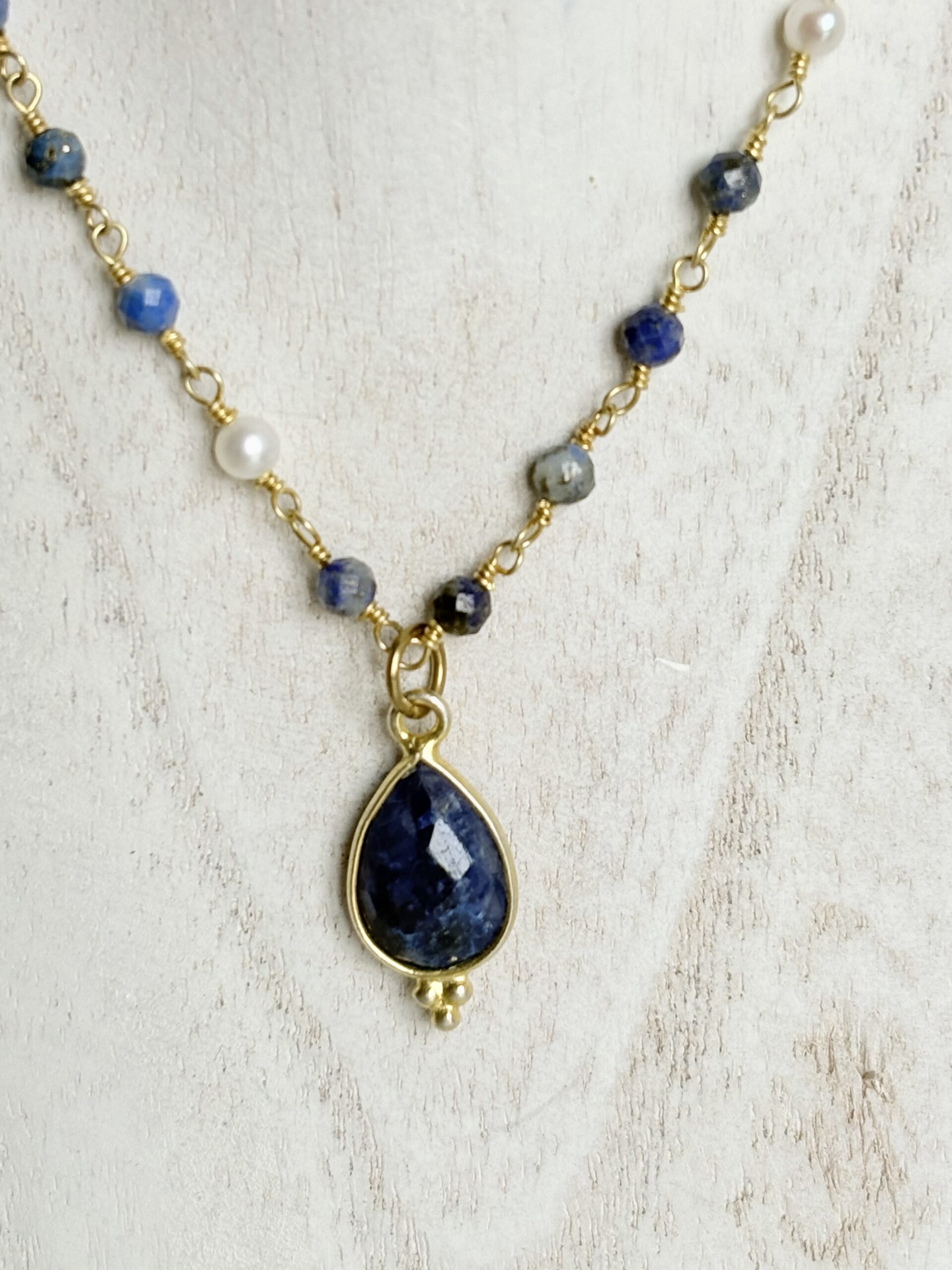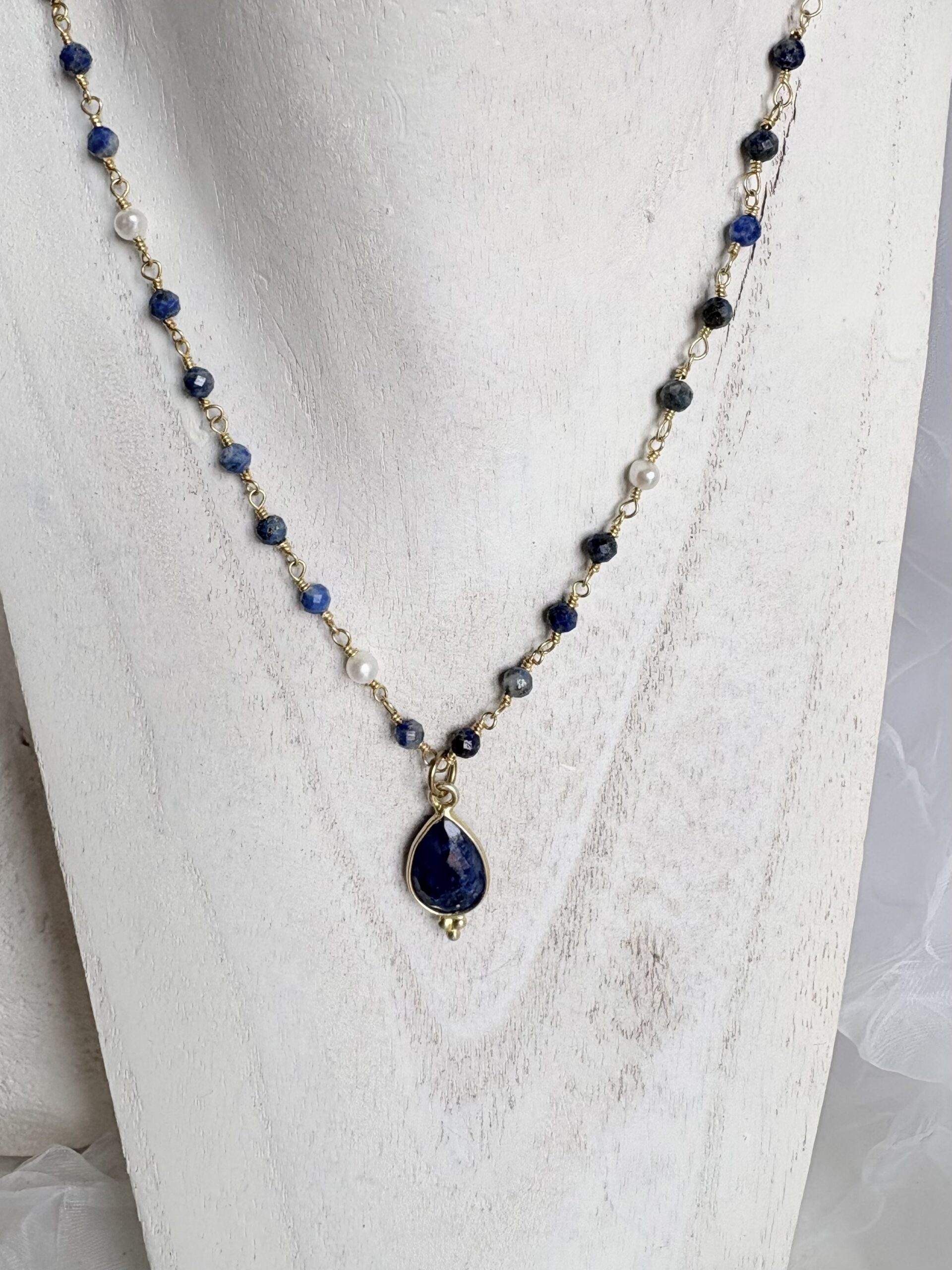 Kette Saphir und Perle, Anhänger Saphir / Einzelstück